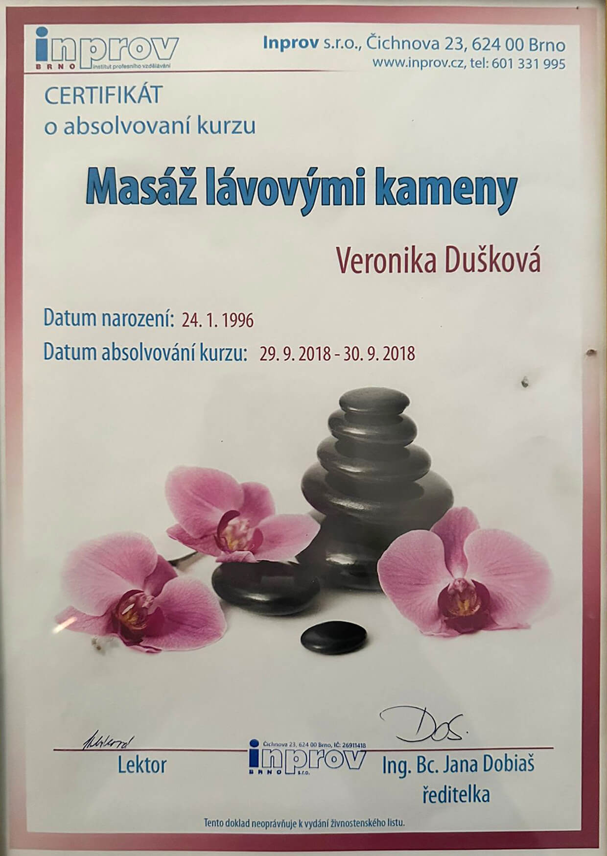 Mým cílem je, aby se u nás každý klient cítil výjimečně. Po příchodu vás přivítám kvalitní kávou, proseccem, čokoládou či ovocem, abyste si mohli užít chvíle relaxace hned od začátku.